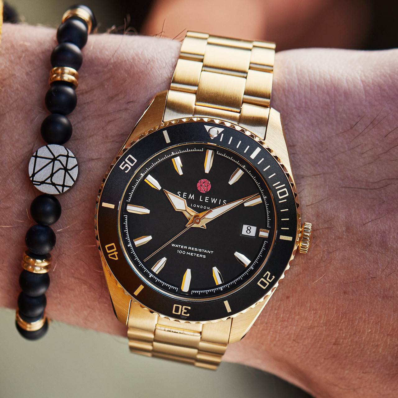 Sem Lewis Lundy Island Diver Klocka Guldfargad Och Svart